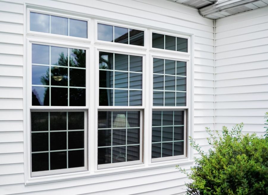 Colonial Exterior Frame Complementary style designed with stepped profiles and shadow lines that mimic authentic wood windows but in a maintenance-free vinyl window. |